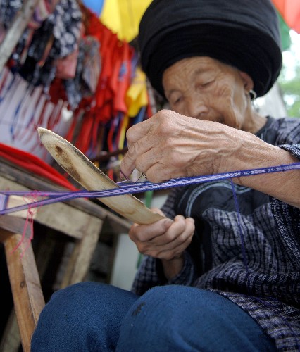 織花帶,據(jù)有關(guān)史書記載:“南蠻斷發(fā)紋身,以示與龍蛇同類,免其傷害。”原來,苗家姑娘織花帶是為了防蛇傷身,所織花帶以假亂真,其花紋形同蛇樣,使蛇誤認(rèn)為是同類,使人不受其害。怪不得本書作者在苗家做客時(shí),曾聽到一個(gè)美好的傳說:在古代,因居住在苗嶺山區(qū)的人經(jīng)常遭受毒蛇的傷害,便有一個(gè)美麗聰明的姑娘想出了一個(gè)辦法,她見蛇遇同類便迅速離開,就仿照蛇的花紋編織了約一寸寬的一種花帶。這種花帶平時(shí)上山纏在身上,如遇毒蛇就取下花帶對蛇一擺弄,這樣毒蛇見了以為是同類,便迅速離開了。這個(gè)辦法很靈,使許多苗家人免受了傷害。自那以后,苗族織花帶也就一代一代傳下來了。苗族花帶經(jīng)代代相傳,越織越快,越織越美,它由原來單一的為了防止蛇傷發(fā)展到現(xiàn)在的多種用途,如作為青年戀愛的信物,饋贈(zèng)親友的禮品,也用于提包的背帶和一部分家具的裝飾等等?;◣У膱D案紋樣也越來越豐富了,有表現(xiàn)吉祥與愛情生活的,如《雙喜臨門》、《五谷豐登》、《鴛鴦戲水》等,也有表現(xiàn)花卉的,如《秋菊》、《蘭草》等等。苗族姑娘編織花帶的工藝也有進(jìn)步,以前織一根花帶,要幾天,現(xiàn)在,只見她們手拿一根牛骨針(也有用銅針與銀針的),如流星閃爍一般,揮針走線,一根一米長的花帶很快就織成了。 苗族同胞特別好客,他們很講禮貌,重感情、守諾言,待人誠懇、憨厚樸實(shí),不虛偽。他們歷來主持正義,扶正斥邪,路見不平,撥刀相助、赴湯蹈火,在所不辭。