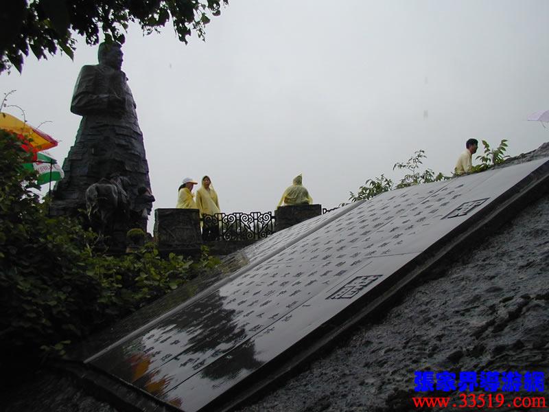 (賀龍銅像)賀龍元帥是中華人民共和國的開國元勛,人民解放軍的締造者之一。他就出生在天子山西邊桑植縣洪家關(guān)的一個農(nóng)民家庭,從兩把菜刀砍鹽局首義起,一生充滿傳奇色彩,元帥家鄉(xiāng)流傳著無數(shù)關(guān)于他的故事與傳說。天子山一帶曾經(jīng)是賀龍、任弼時、肖克、王震等將軍打過游擊的地方。一回,賀龍在鑼鼓塌被民團(tuán)包圍了,當(dāng)?shù)乩习傩占敝猩?,把賀龍卷在斗墊里,躲過了殺身之禍。這個故事至今還在這一帶流傳。