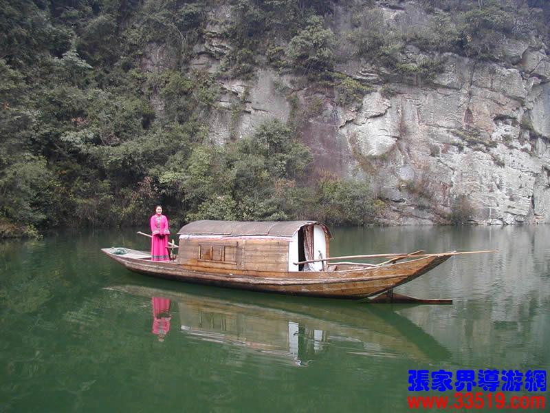 (寶峰湖)云梯直上最高層,忽見粼粼碧水深。果然高峽出平湖,人間瑤池此處尋。寶峰湖水深72米,湖長約2華里,水闊處達150余米,狹窄處公10余米,蓄水量為400多萬立方米。您腳下的這座水壩壩址,在我國水壩選址筑湖史上,堪稱奇跡:壩高80米,最寬處12米,最窄處僅3米。這座風光秀麗的山湖始建于1974年,1979年建成,主要用于山區(qū)小水電和農田灌溉。利用它做旅游風景資源,則是從1984年才開始的。隨著武陵源區(qū)旅游事業(yè)的蓬勃發(fā)展,這座美麗的山湖越來越為中外游客所鐘愛。