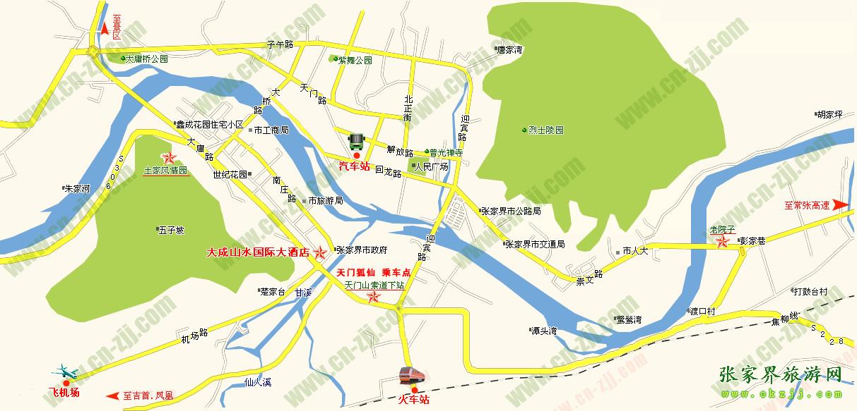 大成山水酒店至天門山景區(qū)可乘10路公交車,車費1元或打的5元即可到達;