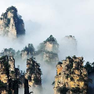 第三天   游世界峰林奇觀:天子山、仙女獻(xiàn)花、御筆峰、賀龍公園、十里畫(huà)廊等,住武陵源索溪峪