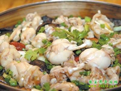 華南湍蛙,又名石蛙,當?shù)厣矫袼追Q“梆梆”,屬兩棲綱蛙科動物,它是捕捉水蛇的能手。華南湍蛙平常生活在溪流石潭中,有時晚上上岸活動。它與斑魚交配產(chǎn)子。華南湍蛙無論白天或黑夜,都能發(fā)出“梆梆”的叫聲,故俗名“梆梆”。華南湍蛙的肉十分細嫩鮮美,尤其燒湯,比雞湯還香甜。它營養(yǎng)豐富,是名貴食品之一,也是待客的上品。