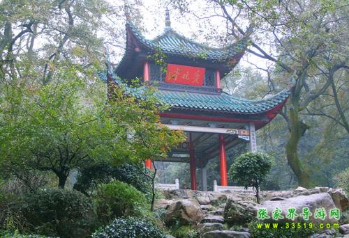 愛(ài)晚亭位于岳麓書(shū)院后青楓峽的小山上,八柱重檐,頂部覆蓋綠色琉璃瓦,攢尖寶頂,內(nèi)柱為紅色木柱,外柱為花崗石方柱,天花彩繪藻井,蔚為壯觀。清乾隆五十七年(公元一七九二年)山長(zhǎng)羅典所建。原名“紅葉亭”,又名“愛(ài)楓亭”。后據(jù)唐代詩(shī)人杜牧《山行》而改名為愛(ài)晚亭,取“停車坐愛(ài)楓林晚,霜葉紅于二月花”之詩(shī)意。