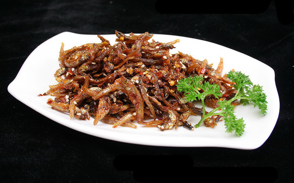 原料為小魚蝦,其中以“青皮嫩”為最佳,肉多味美,魚蝦捕撈上趁新鮮將其沖洗干凈,瀝干水,均勻地攤在熱鍋子里(鍋上刷一層油使它們不粘鍋)。半小時左右,這些魚蝦就已經(jīng)焙干,一側(cè)焦黃,透出薰香,再剔去肚腸,炒豆豉辣椒或?qū)⑶嘟非嗨馇屑毻淳茫兜澜^美。