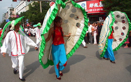 一旦一丑表演,用手巾和折扇作道具。旦的表演含蓄細膩,動作優(yōu)美輕俏,以眉目傳情(脧眉眼)為特點。丑的表演活潑聰明,俏皮逗樂,動作粗獷。流傳在境內(nèi)的地花鼓有“洗菜心”、“銅錢歌”、“望郎歌”等。