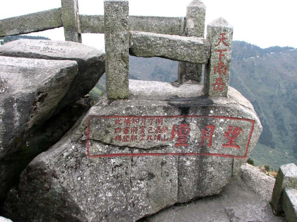 山巔祝融峰,海拔1290米,由于煙云的烘托和群峰的疊襯,構成了"萬丈祝融拔地起,欲見不見輕煙里"的雄姿。登臨其上,可見北面洞庭湖煙波渺渺,若隱若現(xiàn),南面群峰羅列,如障如屏,水面湘江逶迤,宛如玉帶,西面雪峰山頂,銀濤翻騰,萬千景象,盡收眼底。