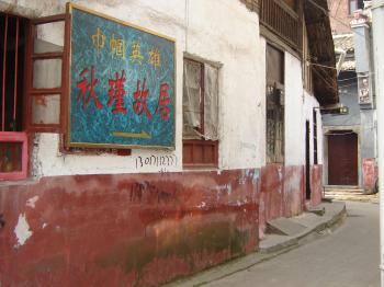 秋瑾故居位于湘潭市十八總由義巷。這位近代史上杰出的巾國英雄、婦女解放運動的先驅(qū),在這里度過了8個春秋。離大碼頭不遠處有一條寬敞的小巷叫由義巷,巷兩旁墻高院深,大多是官紳富商之家,也開設(shè)了幾家當鋪、錢莊。進巷口十多丈遠處,有一棟青磚青瓦麻石門樓的鋪面,大門上首有一塊漢白玉石刻招牌“義源當”,這是湘潭有名的義源當鋪。