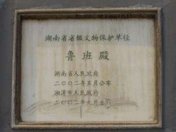 魯班殿位于湘潭市自治街。清乾隆初年由境內(nèi)泥木匠所建,作為公所。民國元年(1912)年燒毀,3年后重建。殿為全木結(jié)構(gòu),上下兩層,廟堂寬闊。門樓正面為八字墻,門額上方為泥塑浮雕《湘潭全城實貌圖》。