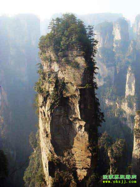 “南天一柱”為張家界“三千奇峰”中的一座,位于世界自然遺產(chǎn) 武陵源風(fēng)景名勝區(qū)袁家界景區(qū)南端,海拔高度1074米,垂直高度約150米,頂部植被郁郁蔥蔥,峰體造型奇特,垂直節(jié)理切割明顯,仿若刀劈斧削般巍巍屹立于張家界,有頂天立地之勢(shì),故又名乾坤柱。