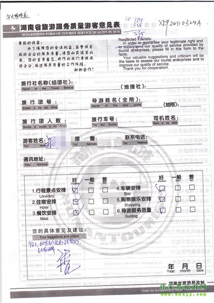 - 游客夏先生為表揚(yáng)導(dǎo)游李姣姣寫來表揚(yáng)信致我張家界... [14811]