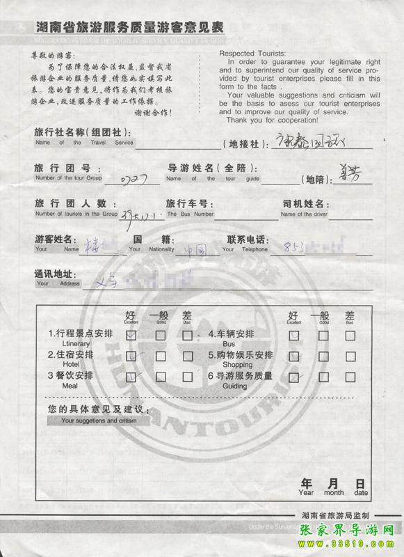 - 游客夏先生為表?yè)P(yáng)導(dǎo)游李姣姣寫(xiě)來(lái)表?yè)P(yáng)信致我張家界... [14811]
