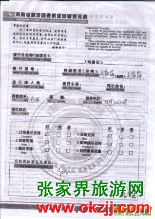 2010年4月8日張先生張家界鳳凰旅游反饋