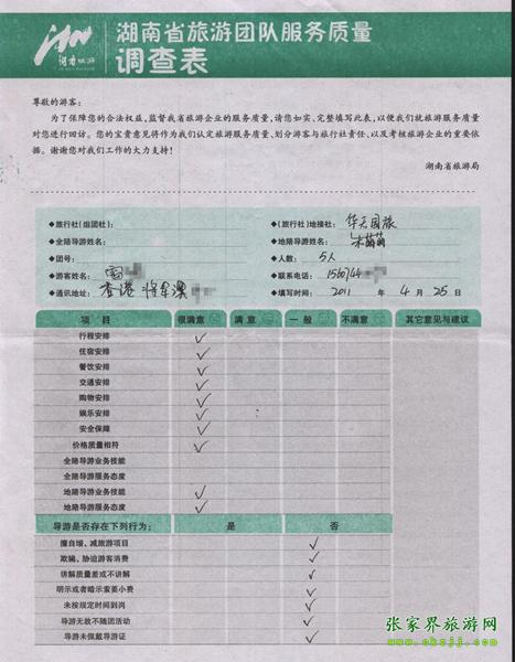 2011年4月25日雷先生一行5人旅游質(zhì)量反饋