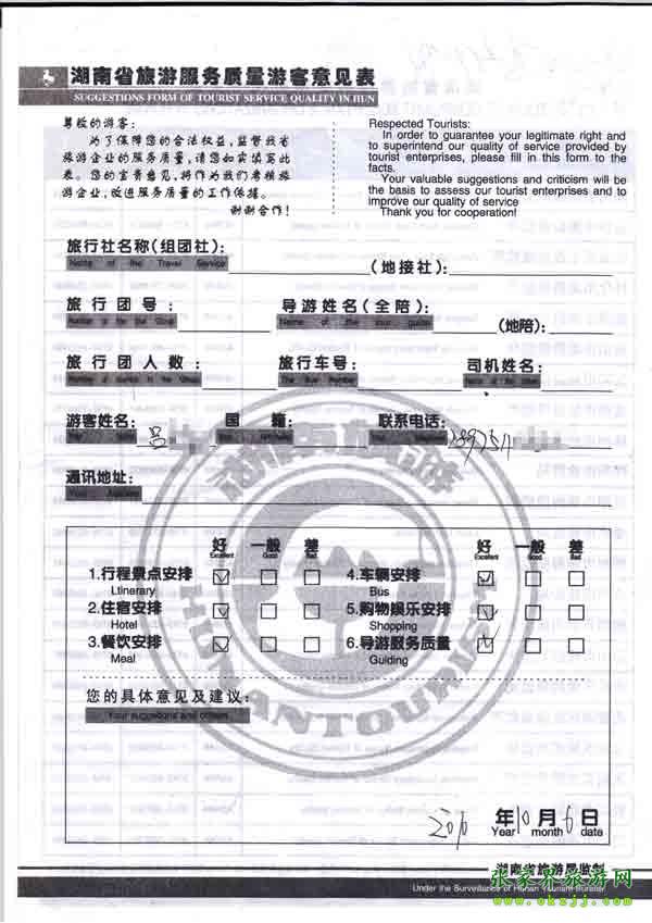 - 2011年10月5日黃先生一行17人旅游質(zhì)量反饋 [7847]