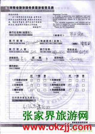 - 游客夏先生為表揚導(dǎo)游李姣姣寫來表揚信致我張家界... [14811]