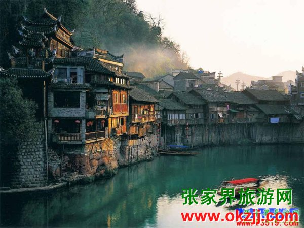 16、如果想看到明信片上的一些景觀,奉勸你少睡一個(gè)舒服覺(jué),早起一次,夏天早上6點(diǎn)起床,江面、山上都有一層霧紗,陽(yáng)光若隱若現(xiàn),光線照在吊腳樓上、扁舟上、萬(wàn)名塔上、虹橋上,都非常的迷人。尤其是,在北門外的跳巖或者跳跳巖上一定要多逗留一刻,除了能讓你抓拍到一些景致外,最好也能放下相機(jī),好好欣賞一下風(fēng)景。