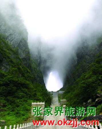 天門(mén)山傳說(shuō) 三國(guó)吳永安六年(公元263年) ,嵩梁山千米高絕之處峭壁忽然洞開(kāi),玄朗如門(mén),吳帝孫休視之吉兆,天門(mén)洞開(kāi)之說(shuō)流傳天下,嵩梁山也由此易名天門(mén)山。拔地擎天的天門(mén)山,山勢(shì)陡險(xiǎn)峻拔,景色雄奇壯麗,被稱為張家界的天然畫(huà)屏。天門(mén)山隆起開(kāi)始于燕山運(yùn)動(dòng),再經(jīng)喜馬拉雅山造山運(yùn)動(dòng),山體劇烈抬升千米以上,周圍被斷層節(jié)理深深切割,加上長(zhǎng)期風(fēng)雨侵蝕的巖溶作用,造就成嵯峨高峙、凌空獨(dú)尊的喀斯特臺(tái)型地貌。其山頂相對(duì)平坦,保存著完整的原始次生林,有著很多極為珍貴和獨(dú)特的植物品種,森林覆蓋率達(dá)90%。其間古樹(shù)參天,藤蔓纏繞,青苔遍布,石筍、石芽舉步皆是,處處如天成的盆景,被人譽(yù)為世界最美的空中花園和天界仙境。